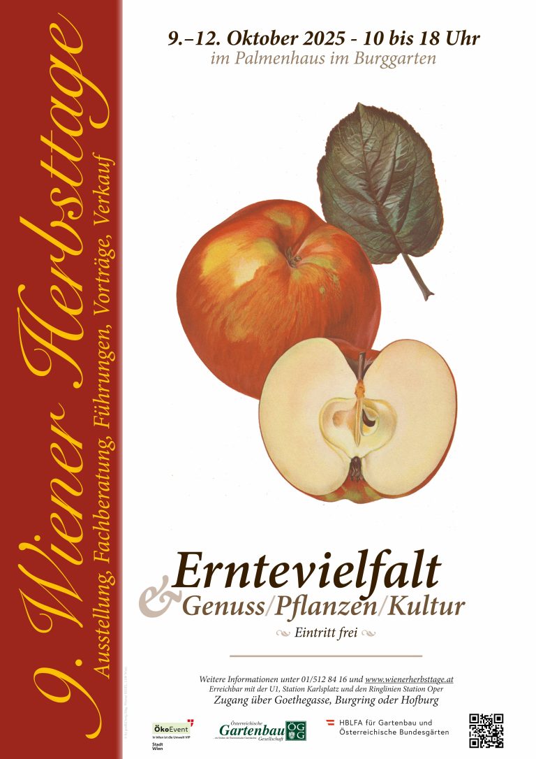 Die Spezialausstellung befasst sich bei den 9. Wiener Herbsttagen mit dem Erziehen von Spalierbäumen. Was ist ein Spalier und welche Formen von Spalier sind bekannt? So viel sei verraten, ein Spalier hat auch in einem kleinen Garten, einem Balkon oder einer Terrasse Platz und kann Sie mit reicher Ernte beschenken.