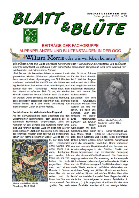 Die neue Blatt & Blüte von der ÖGG-FG Alpenpflanzen und Blütenstauden ist im exklusiven Mitgliederbereich zum Download verfügbar! Lesen Sie über die Sibillischen Berge und botanische Beobachtungen im Hochgebirge sowie die Arts-and-Crafts Bewegung in England und sehen Sie, was sich im Archiv des Österreichischen Alpenvereins in Innsbruck für botanische Schätze versteckt haben.