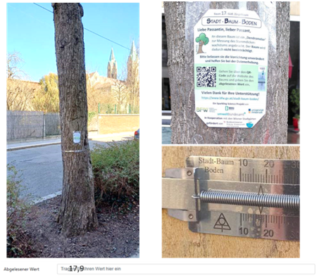 Alles, was ihr benötigt, ist ein Handy, um die Standorte der insgesamt 51 Bäume zu entdecken. Sie sind über ganz Wien verteilt und an einem Metallring (Dendrometer) erkennbar. Eine Anleitung zur Messung findet sich direkt am Baum. Der abgelesene Wert wird per QR-Code an eine Datenbank geschickt. Das Baumwachstum ist so nahezu „live“ für alle einsehbar.