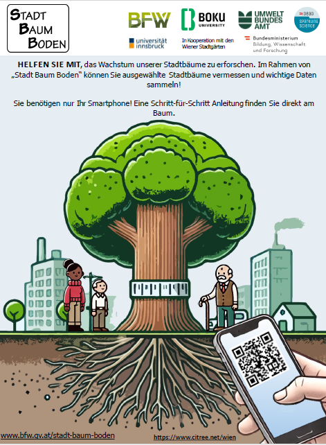 Bäume sind in Städten unentbehrlich, sie sind Schattenspender, Luftverbesserer, Klimaanlage, Lärmreduzierer und bieten erholsamen Lebensraum. Allerdings leben sie unter schwierigen Bedingungen, vor allem Bodenverdichtung, Versiegelung und eingeschränkter Wurzelraum setzen ihnen zu. Im Rahmen des Projektes „Stadt-Baum-Boden“ sind interessierte Personen aus Wien und Innsbruck aufgerufen, das Wachstum von Bäumen zu vermessen. Damit sammeln sie für die Forschung wichtige Daten.